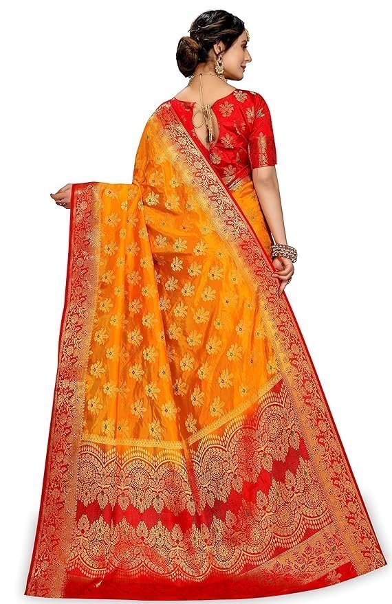 Sarees for Women Wear Cotton Silk Banarasi Sari Kanjivaram Soft 2024 Wedding Original Pure Kanchipuram Pattu Sadi with Blouse Piece (Barmasi)